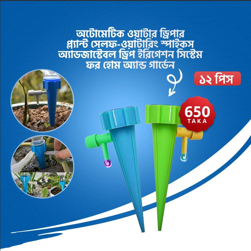 গাছের যত্ন এখন হবে আরও সহজ ও স্মার্ট — introducing অটোমেটিক ওয়াটার ড্রিপার। এটি আপনার শখের গাছটিকে পর্যাপ্ত পরিমাণে পানি সরবরাহ করে স্বাভাবিক বৃদ্ধিতে অকল্পনীয়ভাবে সাহায্য করবে। আমাদের প্রতিনিয়ত ব্যস্ত জীবনে আমরা সময়মতো গার্ডেনে পানি দিতে অনেক সময় ভুলে যাই। অটোমেটিক ওয়াটার ড্রিপারের সাহায্যে আপনি হাফ লিটার পানি দিয়ে পাঁচ থেকে সাত দিন অটোমেটিক পানি দিতে পারবেন। এতে করে পানি অপচয় হবে না, সঠিক জায়গায় পানি পৌঁছাবে। এটি আপনি যে কোনো বোতলের সাথে ফিট করতে পারবেন।