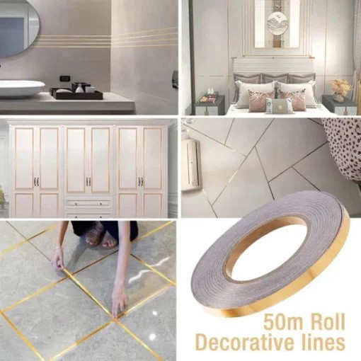 বাসা বা অফিসের মেঝে, দেওয়াল, বা ফার্নিচারের ফাঁকগুলো সুন্দর ও পরিপাটি করতে ব্যবহার করুন আমাদের 166 ফুট দৈর্ঘ্যের গোল্ডেন কালারের Self-Adhesive Tile Gap Tape। এটি ওয়াটারপ্রুফ এবং পরিধান-প্রতিরোধী।