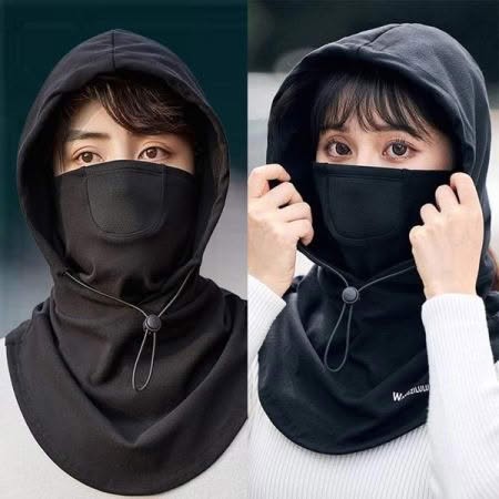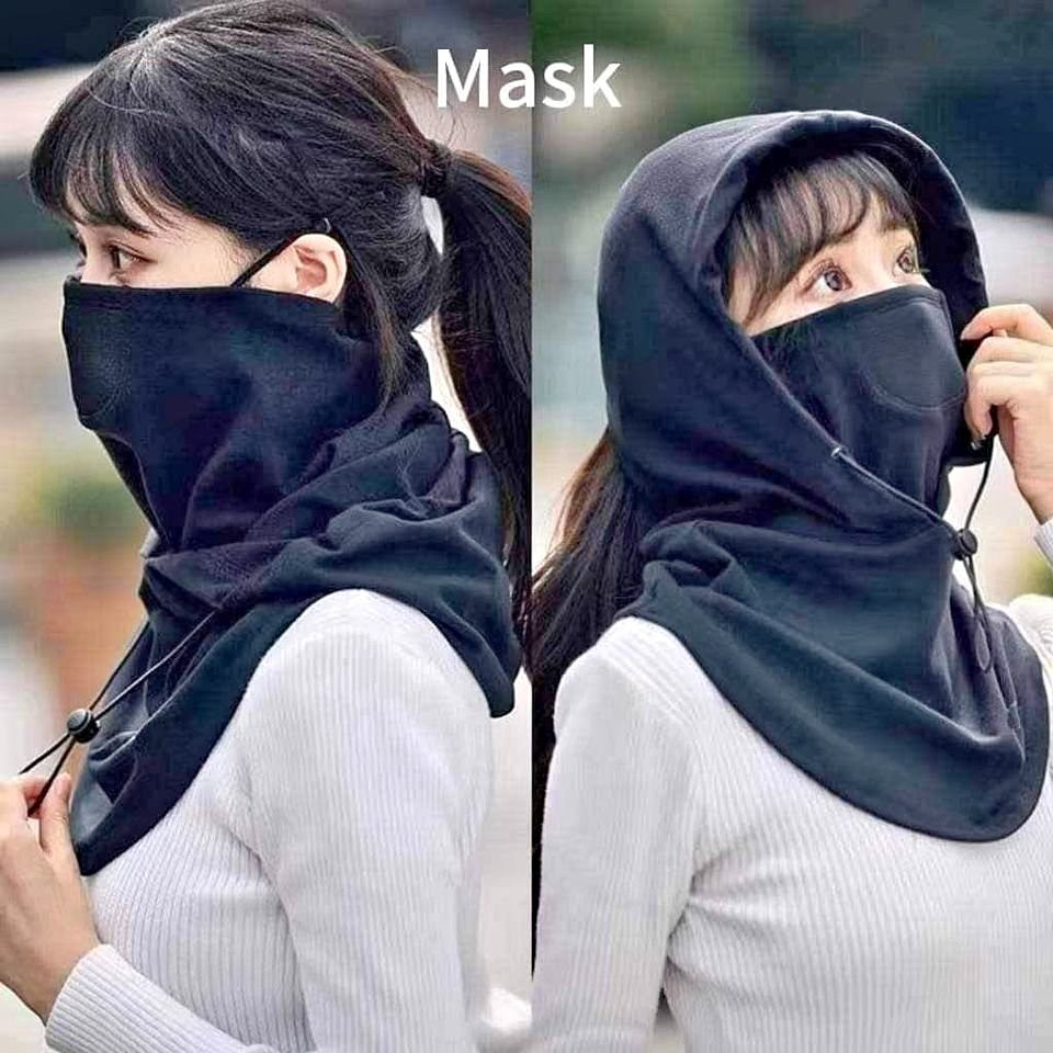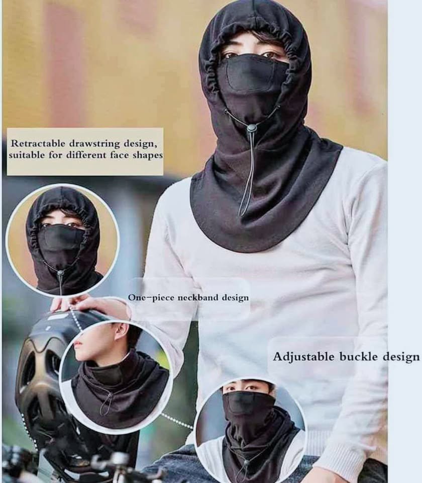 - Windproof Cycling Face Cover With Hat For Winter Bike Hooded Mask With Neck Warmer
