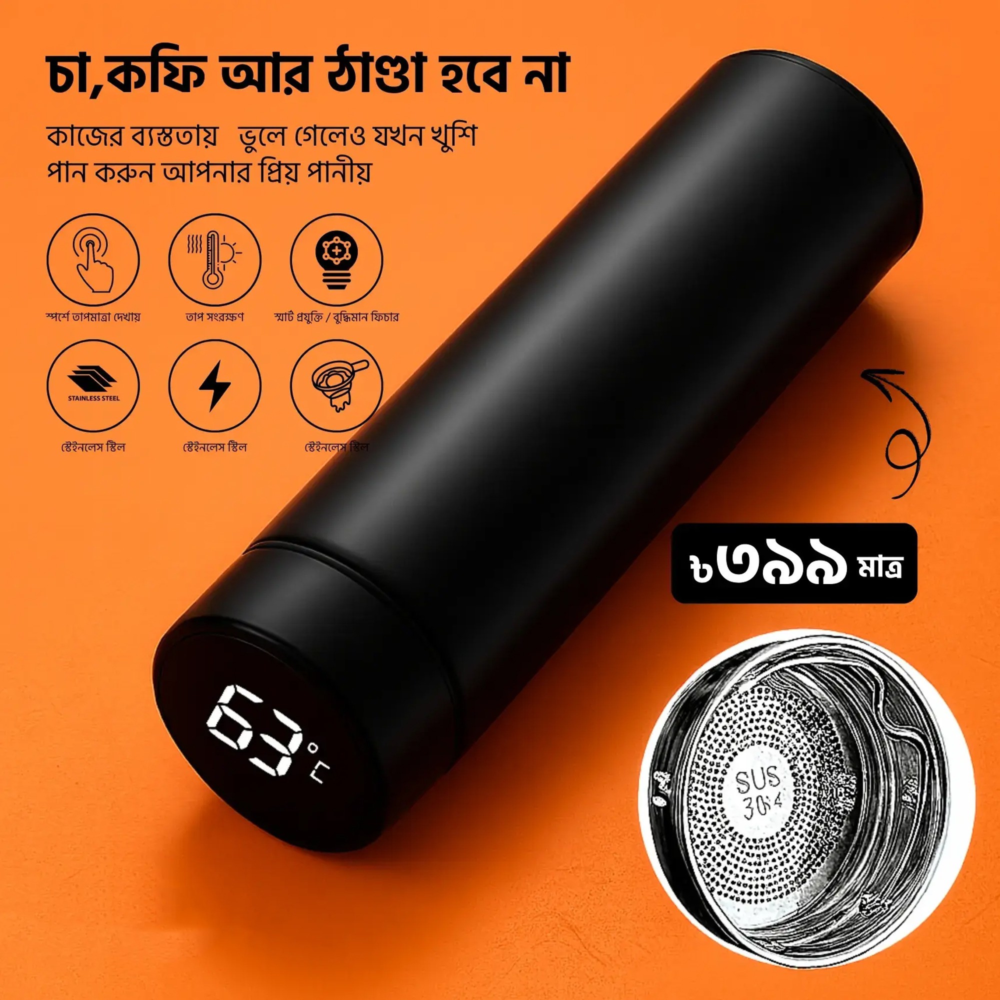 Smart LED Water Bottle – ১২ ঘণ্টা গরম, ২৪ ঘণ্টা ঠান্ডা রাখে আপনার পানীয় !